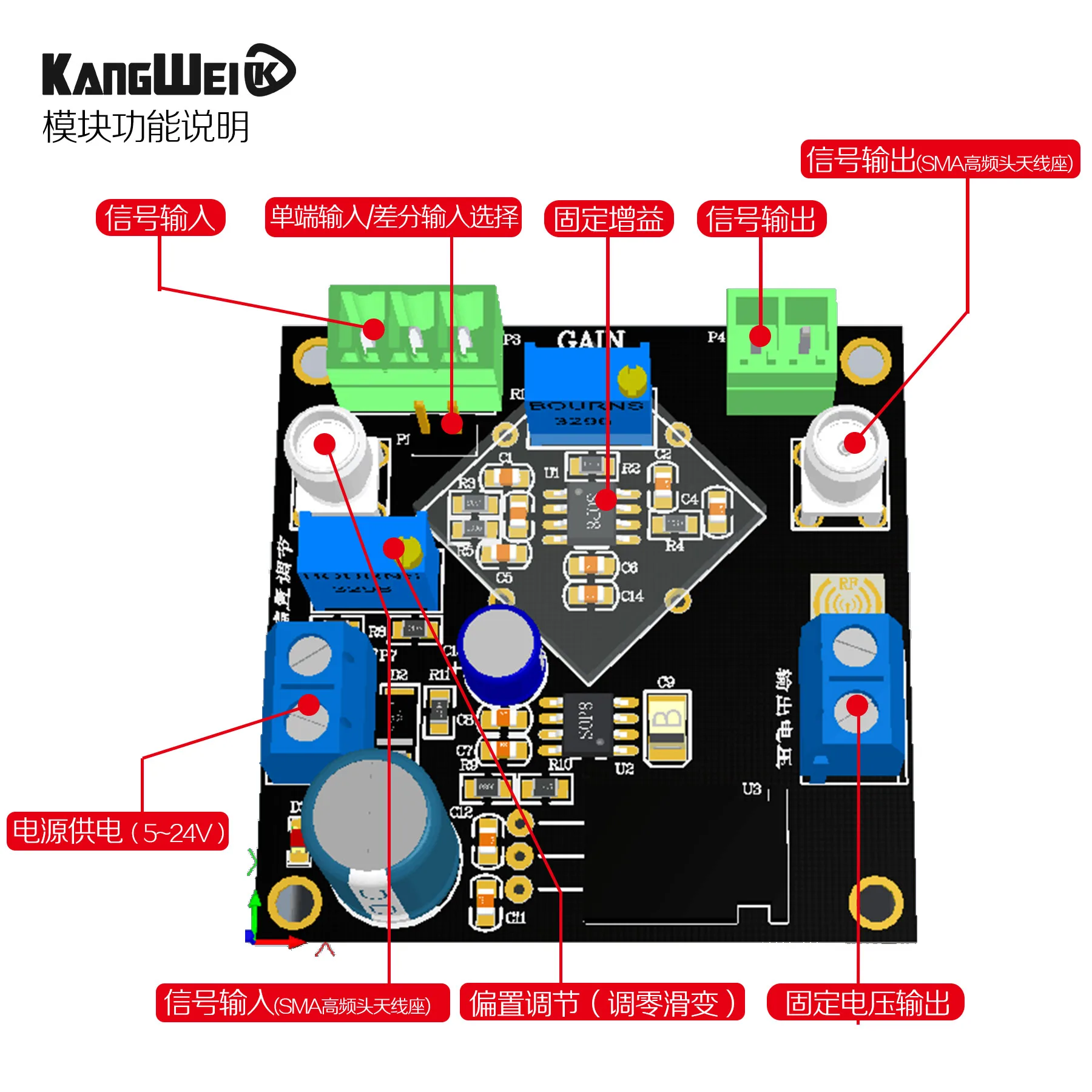 DC AC Instrument Amplifier AD620 Voltage Amplifier Module Small Signal Single-ended Differential